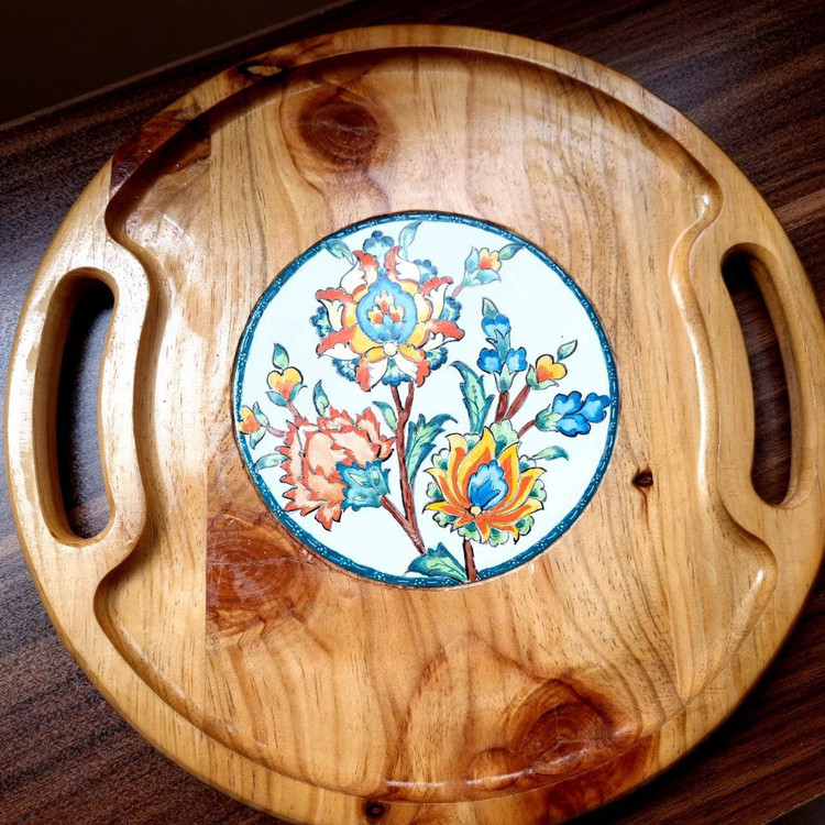 سینی چوبی میناکاری دسته دار چوب روس ضد آب